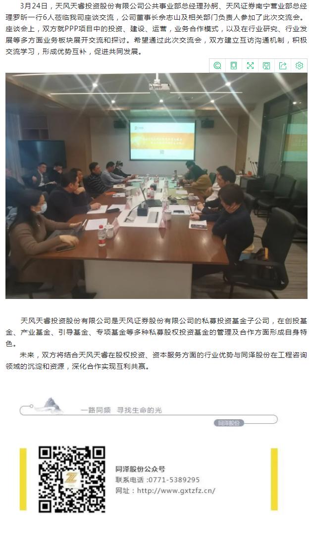 合作交流 | 天风天睿投资股份有限公司到访williamhill英国官网座谈交流