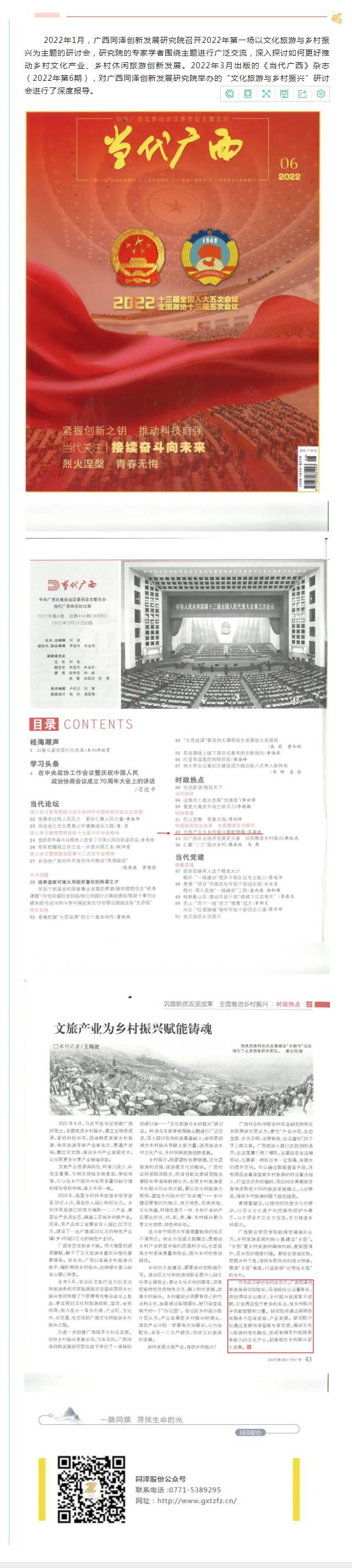 同泽研究院“文化旅游与乡村振兴”研讨会获《当代广西》杂志报导