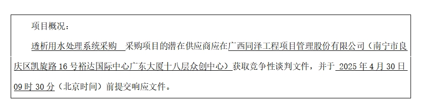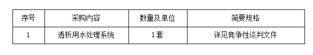项目名称:透析用水处理系统采购